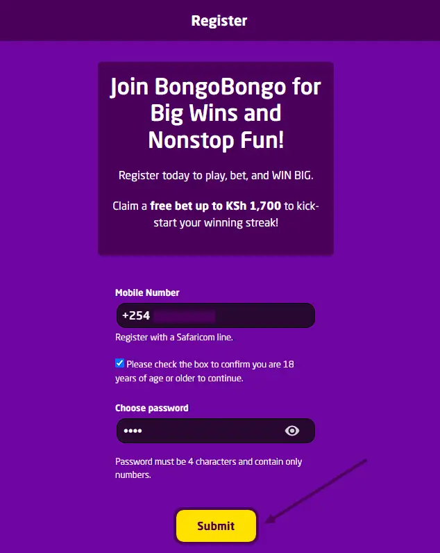Residents of Kenya who are at least 18 years old at the time of account creation are eligible to register. Visit the BongoBongo website and click on the Register button.