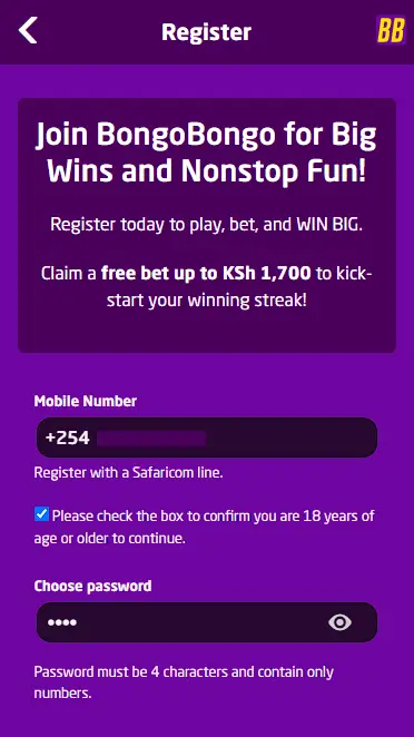 Residents of Kenya who are at least 18 years old at the time of account creation are eligible to register. Visit the BongoBongo website and click on the Register button.